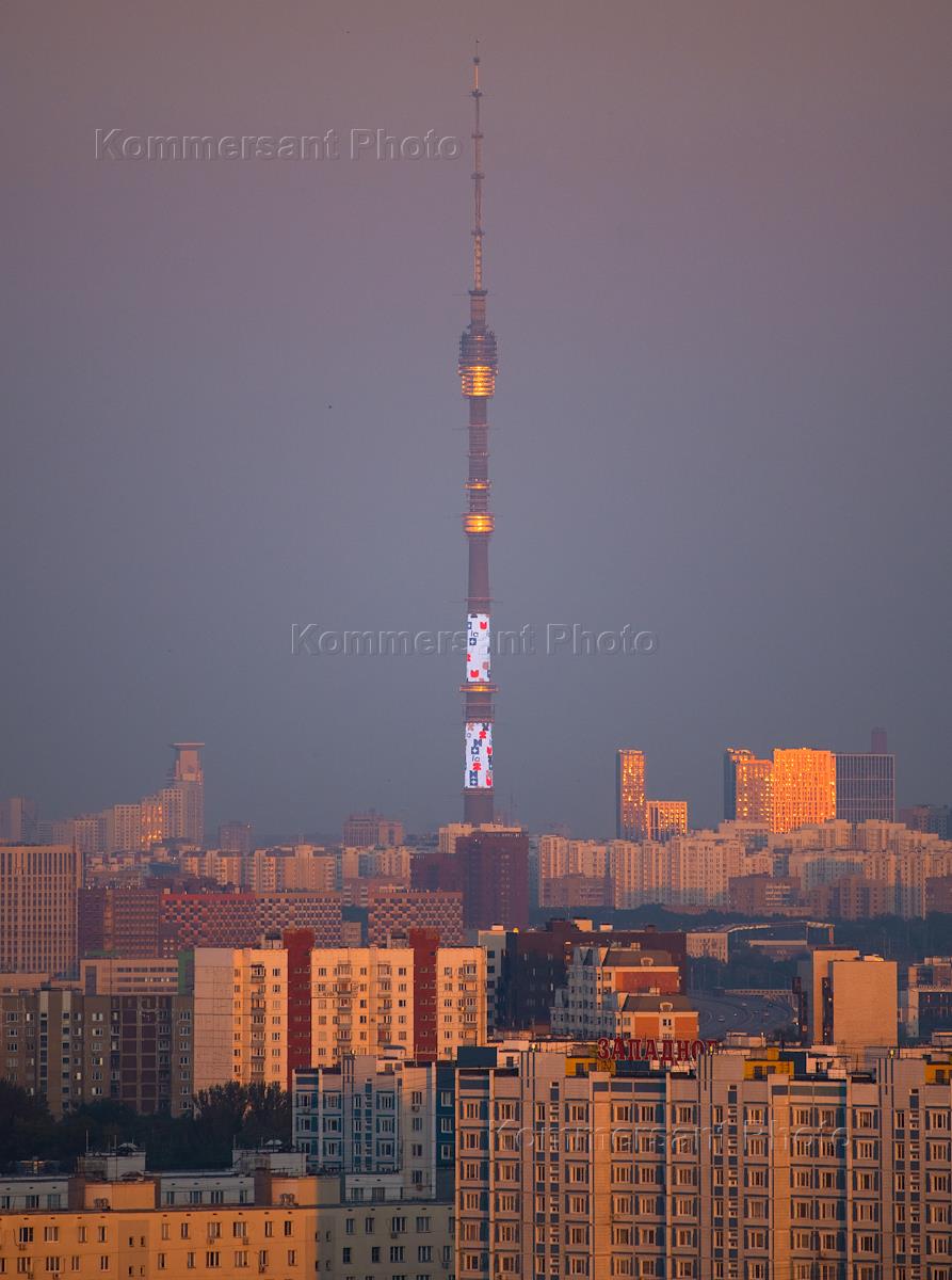 Жанровая фотография. Вид на жилые дома вечером. Останкинская телебашня.
