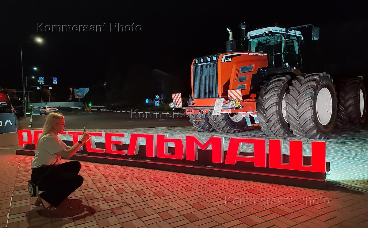 Жанровая фотография. Девушка фотографирует трактор Кировец К-7М у здания Международного аэропорта…