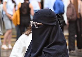 Жанровая фотография. Иностранные туристы на Красной площади. Женщина в никабе.