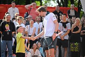 Казахстанский теннисист Александр Бублик во время мастер-класса на открытом пространстве FonBase в…