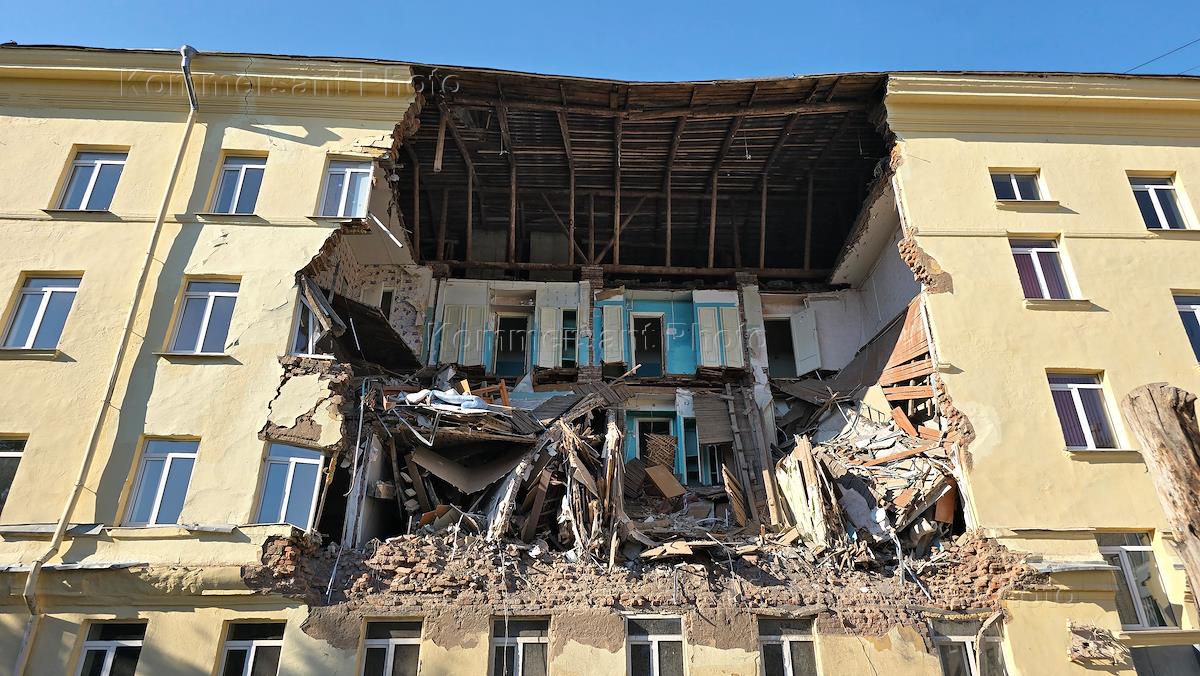 Частичное обрушение стены и деревянных перекрытий пятиэтажного здания на Коммунистической улице, 52а.
