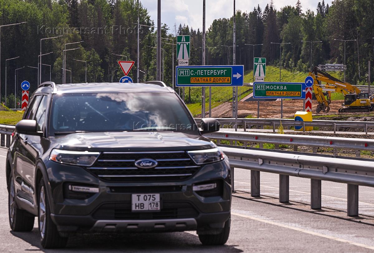 Церемония открытия движения по новой транспортной развязке на 385-м километре скоростной трассы М-11 "Нева" в Тверской области.