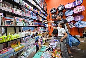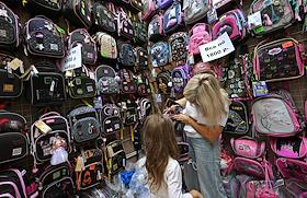 Большая школьная ярмарка в торговом комплексе "Садовод". Жанровая фотография. Покупатели на ярмарке.
