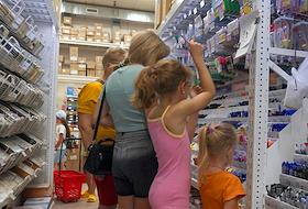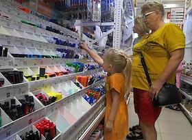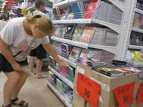Жанровая фотография. Подготовка к школе. Покупатели в отделе школьной канцелярии.