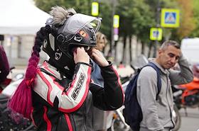 Фестиваль "Мотостолица-2025" на Манежной площади в Санкт-Петербурге. Участники на фестивале.