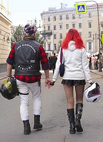 Фестиваль "Мотостолица-2025" на Манежной площади. Участники на фестивале.