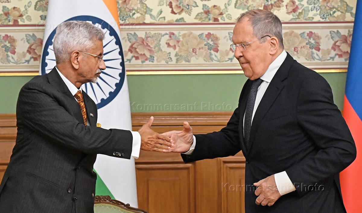 Политика Переговоры министра иностранных дела России Сергея Лаврова с министром иностранных дел Индии Субраманьямом Джайшанкаром в особняке МИД России.