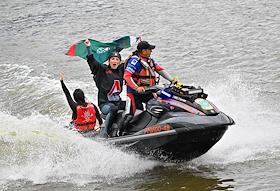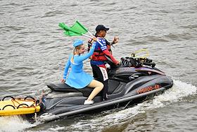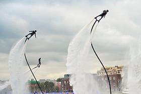 Спортивно-развлекательный фестиваль "ЛетФест" на Крымской набережной. Участники водного шоу во время…