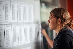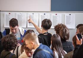Жанровые фотографии. Абитуриенты изучают списки с результатами зачисления.