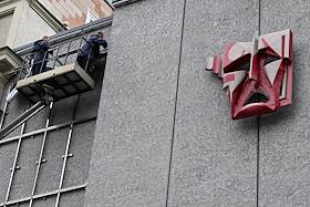 Жанровая фотография. Виды Москвы. Здание Театра Сатиры на Триумфальной площади. Ремонт фасада здания…
