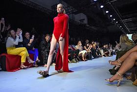 Пятая Московская неделя моды в Московском концертном зале "Зарядье". Жанровая фотография. Красные…