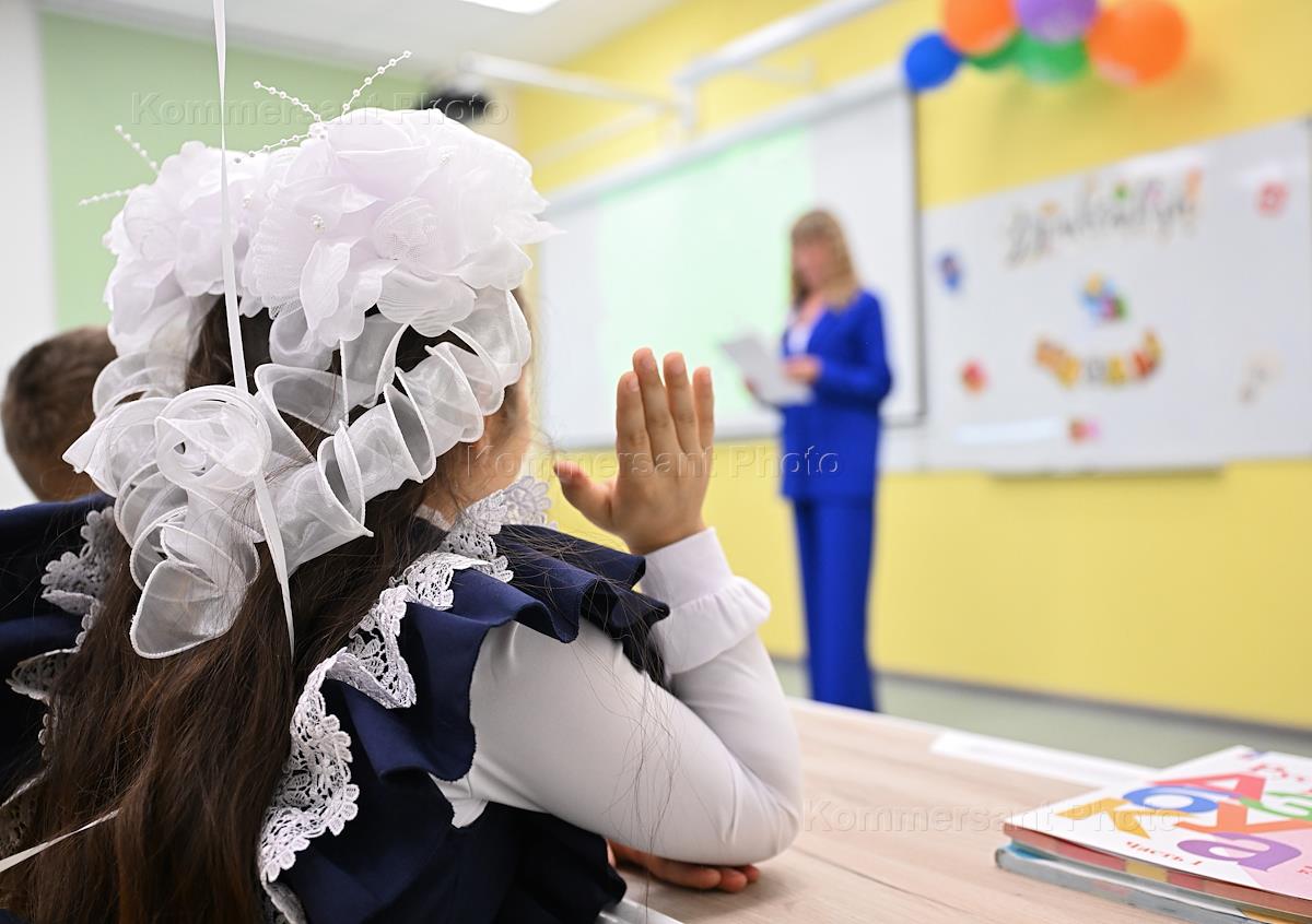 День знаний в Лопатинской средней общеобразовательной школы. Первоклассники в классе после…