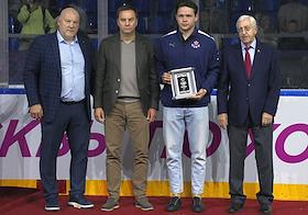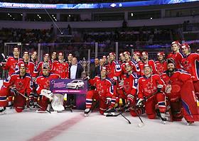 Кубок мэра Москвы по хоккею. Церемония награждения на стадионе "Мегаспорт". Слева направо: президент…