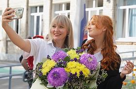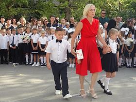 День Знаний в школе № 18 имени Героя Советского Союза Карбышева в Волжском. Ученики и родители во…