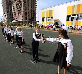 Празднование Дня знаний в Анкудиновской средней школе, построенной в ЖК Анкудиновский парк.