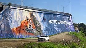 Виды Владивостока. Жанровая фотография. Мурал с изображением президента России Владимира Путина с…
