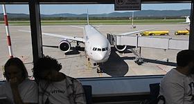 Виды Владивостока. Жанровая фотография. Пассажиры на летном поле перед посадкой в самолет.
