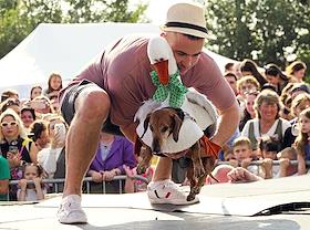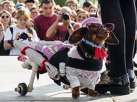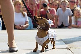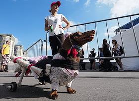 Костюмированный парад такс в Линейном парке Васильевского острова. Участники парада.