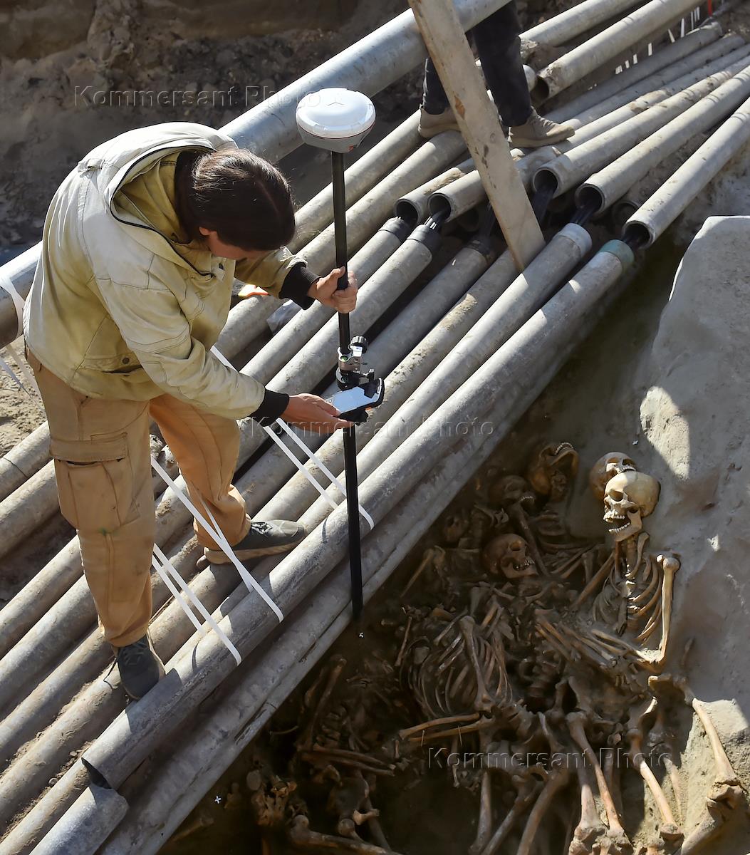 Археологические раскопки массового захоронения XVII века на улице Каратанова, обнаруженные во время…