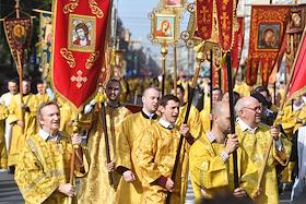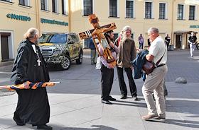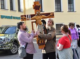 Религия "День перенесения мощей святого князя Александра Невского и общегородской крестный ход". Малый Крестный ход от Александро-Невской лавры к площади Александра Невского. Молебен на площади Александра Невского.