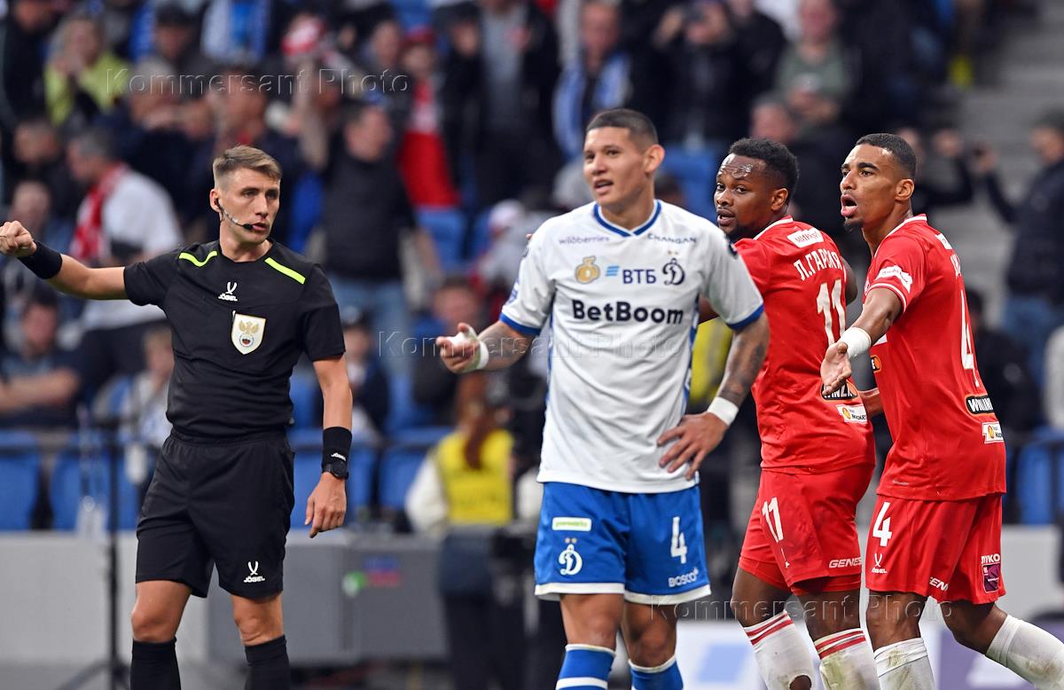 Мир Российская Премьер-Лига (РПЛ) 2025/2026. 8-й тур. Матч между командами "Динамо" (Москва) - "Спартак" (Москва) на стадионе "ВТБ Арена".
