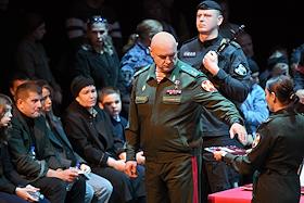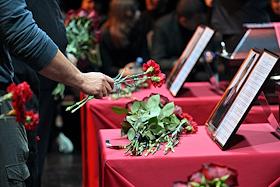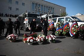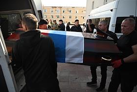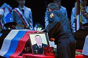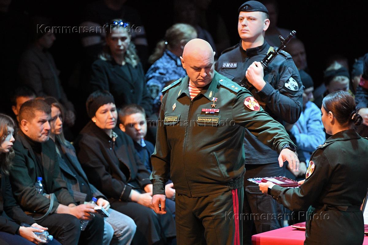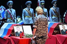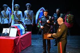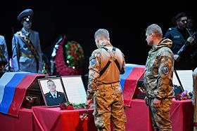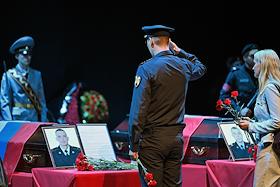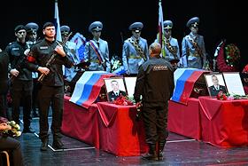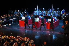 Общество Церемония прощания с тремя бойцами ОМОН "Крепость" Управления Росгвардии по Орловской области, погибшими при взрыве на железнодорожном перегоне "Малоархангельск — Глазуновка" в Орловском академическом драматическом театре имени И.С.Тургенева.