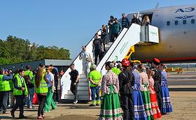 Первый рейс после возобновления работы аэропорта Краснодара.