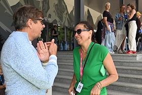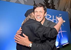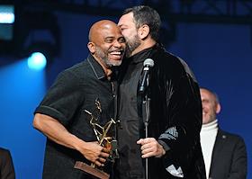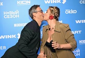Фестиваль онлайн-кинотеатров "Новый сезон" на горном курорте "Роза Хутор". Церемония закрытия. Слева…