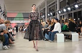 Показ новой коллекции Vika Gazinckaya дизайнера Виктории Газинской во Дворце пионеров на Воробьевых горах.