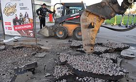 Виды Санкт-Петербурга. Жанровая фотография. Дорожная техника во время укладки асфальта.