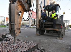 Виды Санкт-Петербурга. Жанровая фотография. Дорожная техника во время ремонта дороги.