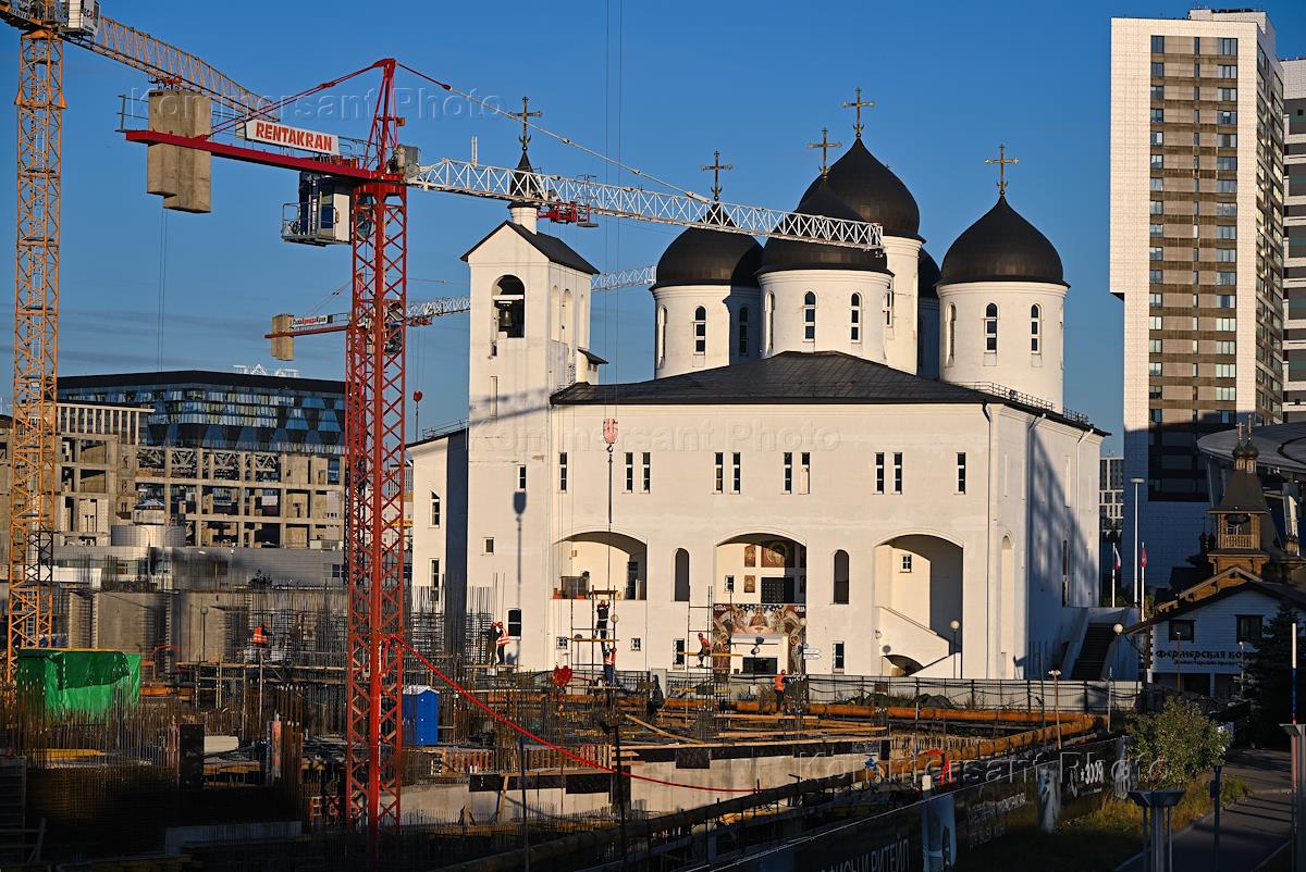 Жанровая фотография. Строительство на Ходынском поле у станции метрополитена "ЦСКА". Храм…
