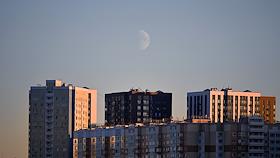 Жанровая фотография. Дневная луна над многоэтажными жилыми домами в районе станции метро "ЦСКА".