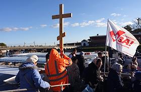 Религия Крестовоздвиженский крестный ход по рекам и каналам Санкт-Петербурга, посвященный годовщине подписания патриархом Кириллом прошения о запрете абортов в России.