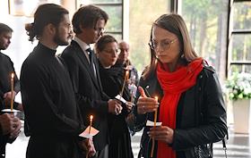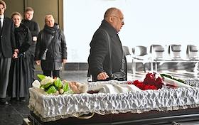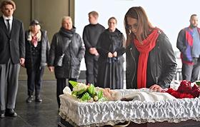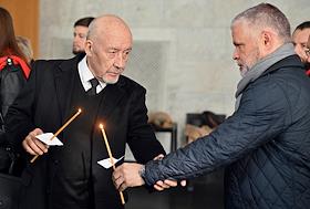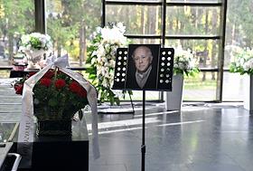 Церемония прощания с бывшим главным редактором журнала "Огонек" Виталием Коротичем в Николо-Архангельском крематории.