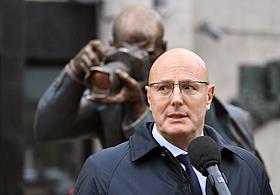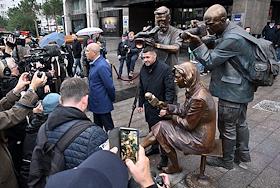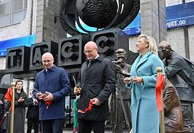 Общество Торжественная церемония открытия скульптурной композиции "Российские журналисты" скульптора Владимира Иванова у здания информационного агентства ТАСС на Тверском бульваре.