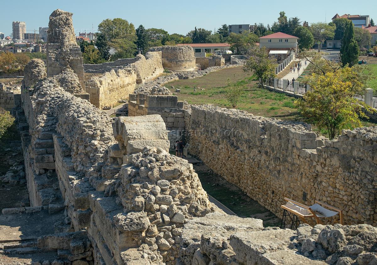 Виды Музейно-храмового комплекса "Херсонес Таврический". Жанровая фотография. Туристы на территории…
