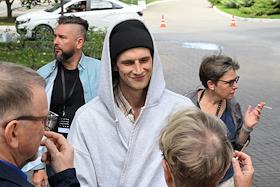 Фестиваль актуального российского кино "Маяк". Актер Евгений Кунцевич (слева) перед показом сериала…