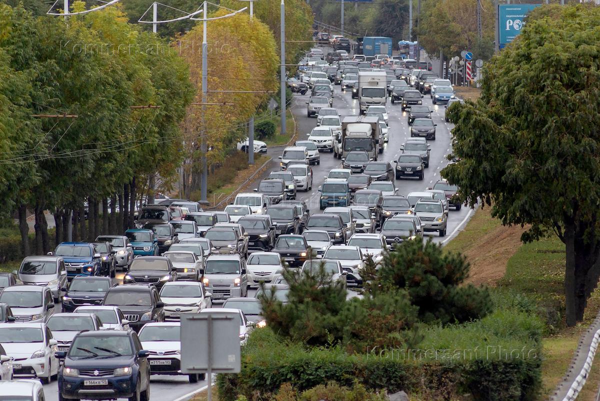 Виды Владивостока. Жанровая фотография. Дорожное движение на одной из улиц города.