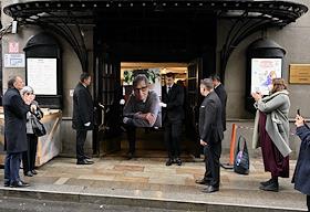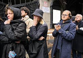 Прощание с заслуженным деятелем науки РФ и театроведом Алексеем Бартошевичем в Учебном театре ГИТИС.