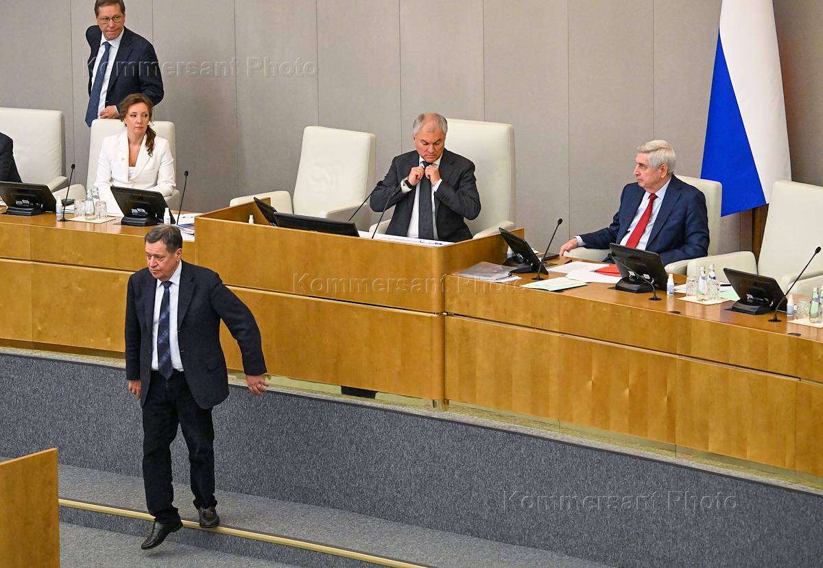 Пленарное заседание Государственной думы (ГД) России. Слева направо: председатель ГД России Вячеслав…