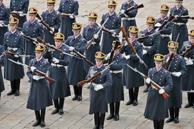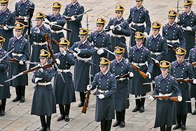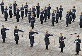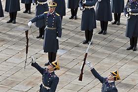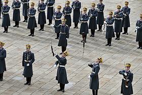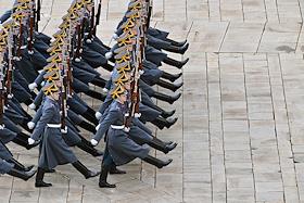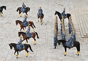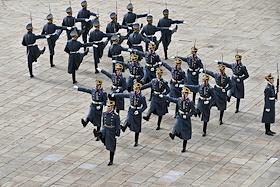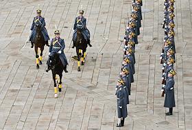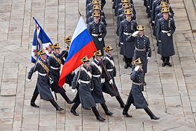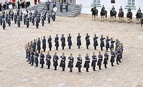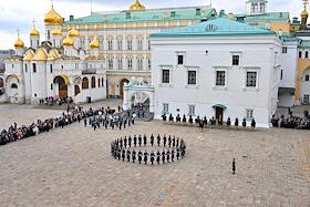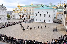 Церемония развода пеших и конных караулов Президентского полка ФСО России на Соборной площади Московского Кремля.