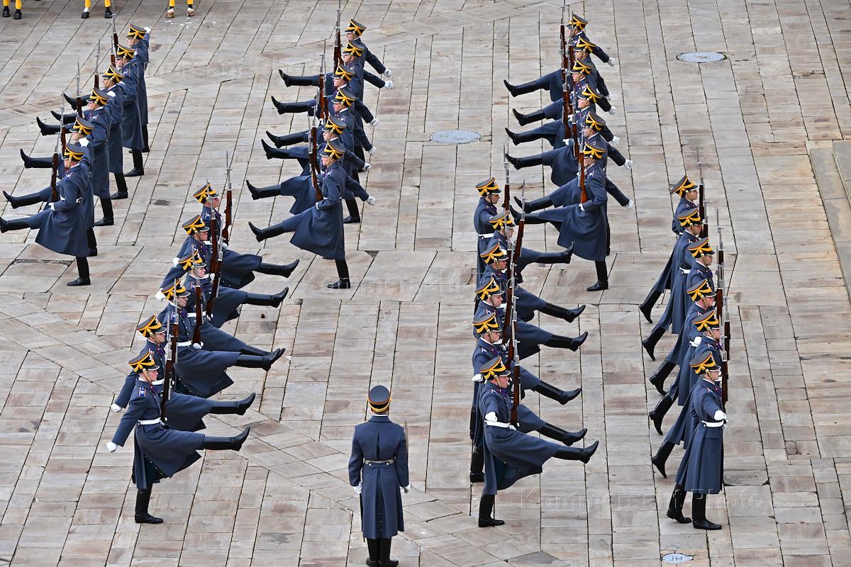 Церемония развода пеших и конных караулов Президентского полка ФСО России на Соборной площади…