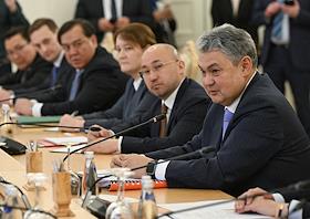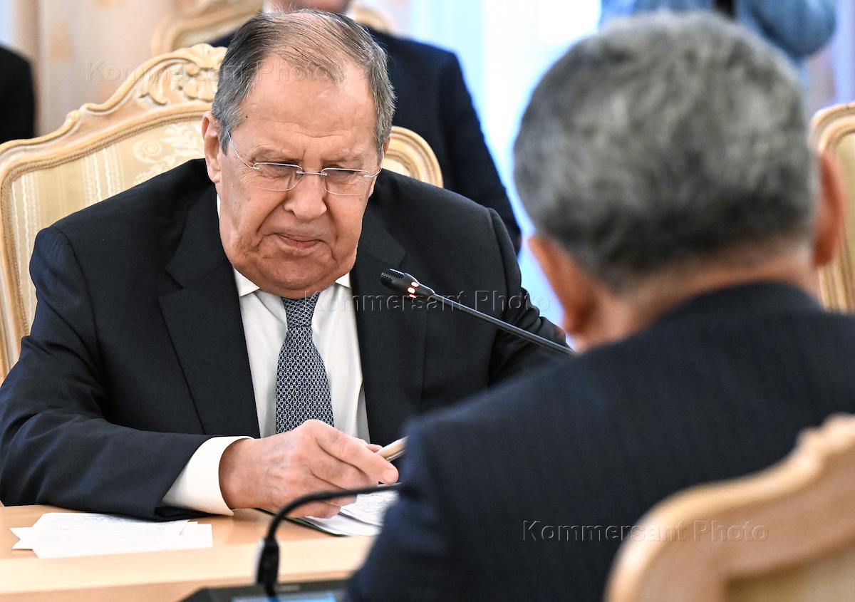 Политика Переговоры министра иностранных дел России Сергея Лаврова с министром иностранных дел Казахстана Ермеком Беделбаевичем Кошербаевым в Доме приемов МИД России.