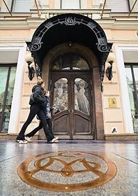 Виды Москвы. Жанровая фотография. Вензель предпринимателя Григория Елисеева на тротуаре и входных…