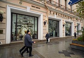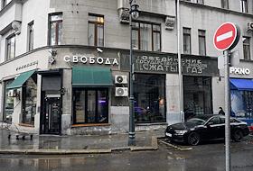 Виды Москвы. Жанровая фотография. Вывеска "магазин Елисеевский" на Тверской улице.