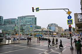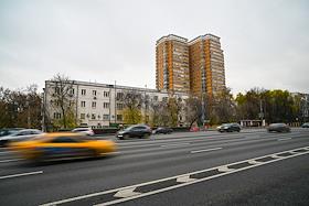 Виды Москвы. Жанровая фотография. Многоэтажное здание на Можайском шоссе, дом 6 корпус1 рядом с…