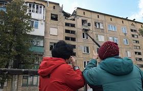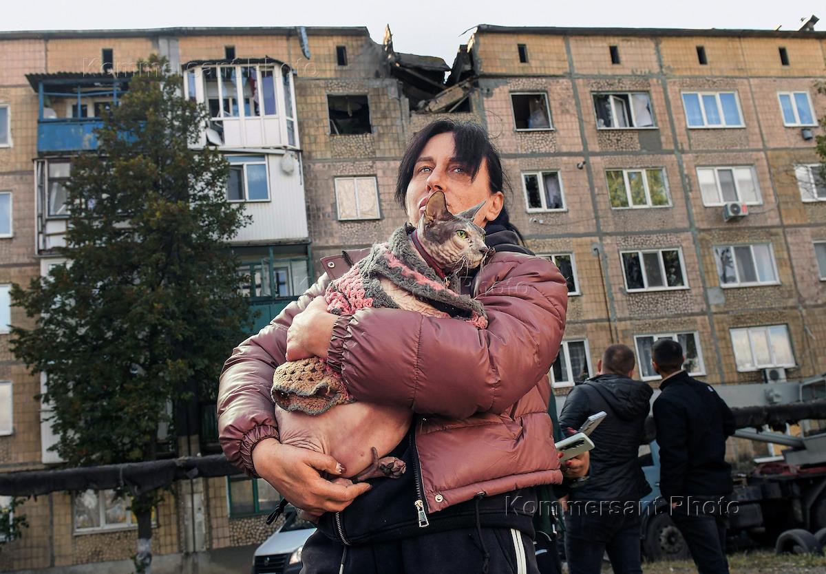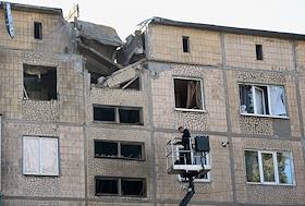 Последствия обстрела жилого дома в городе Ясиноватая Донецкой Народной Республики (ДНР).