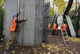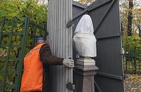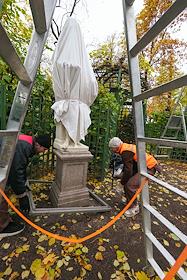 Жанровые фотографии. Подготовка скульптур Летнего сада к зиме.