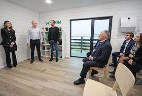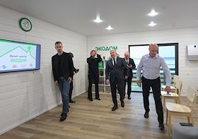 Церемония открытия визит-центра "Экодом" в Шарташском лесном парке. Министр природных ресурсов и…